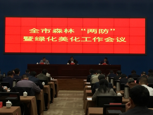 2017年11月9日,我市组织召开全市森林"两防"暨绿化美化工作会议。市直机关相关单位代表、区县(市)分管领导、农林局分管局长、国有林场场长等120余人参加会议。市政府副市长卞吉安到会并讲话。