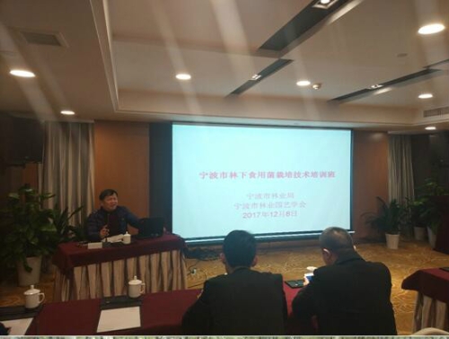 为大力推广林下套种食用菌种植栽培新技术,合理利用森林资源和林地空间,促进林下经济向集约化、规模化、标准化和产业化发展,促进山区农民致富奔小康,宁波市林业园艺学会于12月7日-8日在新金星宾馆举办了林下食用菌种植技术培训班。本次培训班由来自全市有意愿从事和了解林下食用菌发展竹林、经济林经营林场以及大户、相关合作社负责人等共100余人参加。